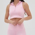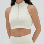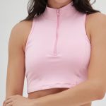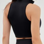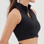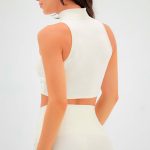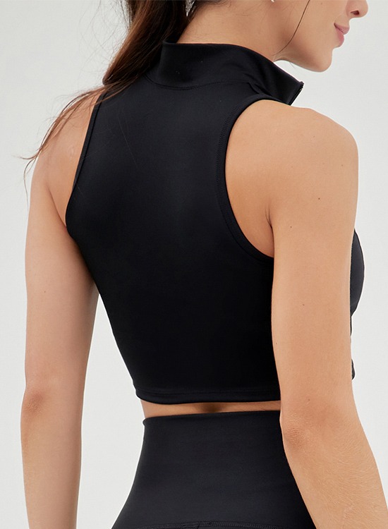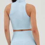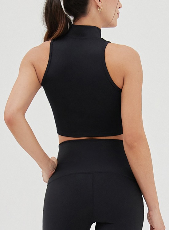 Este top con textura suave, doble tela, con cuello alto reforzado y cierre frontal, un top básico, pero con estilo y estructura, no se trasparenta, la tela es gruesa y confortable.